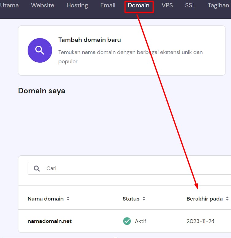 Setelah tanggal berakhir, domain akan memasuki fase dapat diperpanjang – kemudian domain akan terhapus secara otomatis. Klik Apa yang terjadi jika masa berlaku domain berakhir? untuk mengetahui siklus masa aktif domain lebih lanjut.