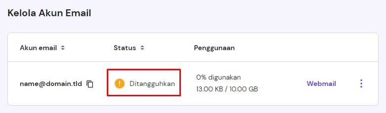 Apabila Anda menggunakan Email Hostinger dan layanan email berada dalam status Suspended dan/atau dinonaktifkan secara otomatis: