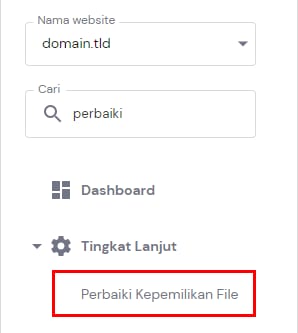 Terkadang kepemilikan file rusak atau salah konfigurasi. Dengan adanya fitur Perbaiki Kepemilikan File di hPanel akun, Anda bisa memperbaiki file yang rusak tersebut. Caranya, masuk ke WebsitesManage → Kelola → Tingkat Lanjut → Perbaiki Kepemilikan File: