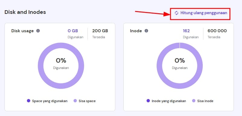 Jika jumlah inode tetap tidak berubah, klik Hitung ulang penggunaan:
