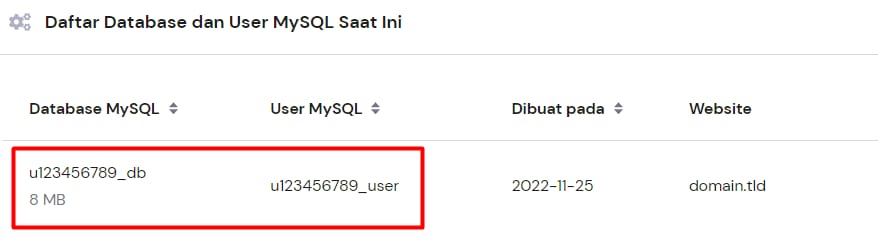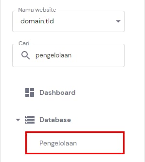 Anda dapat menemukan detail database MySQL melalui WebsiteKelola Database → Pengelolaan:
