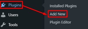 Anda dapat mengaktifkan mode maintenance atau pemeliharaan untuk situs WordPress melalui plugin. Login ke Dashboard Admin WordPress (domain.tld/wp-admin), pilih menu Plugin dan klik Add new: