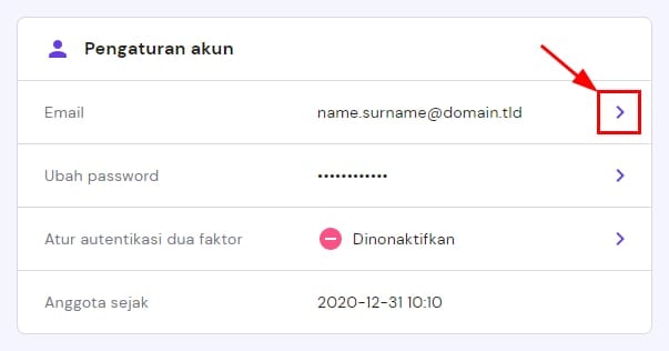 3. Pada Pengaturan akun, klik tombol > pada bagian Email: