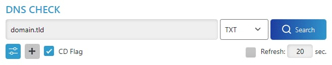 Apa artinya? TXT record yang ditambahkan belum diberikan waktu yang cukup untuk proses propagasi DNS. Untuk memeriksa status propagasi terkini, Anda bisa membuka DNS Checker dan memasukkan datanya seperti ini: