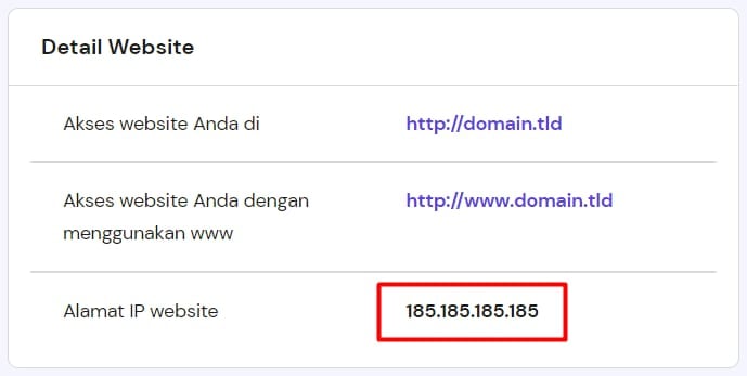Mencari alamat IP hosting di hPanel