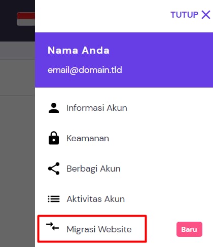 Anda juga bisa mengaksesnya dari ikon profil → Migrasi Website: