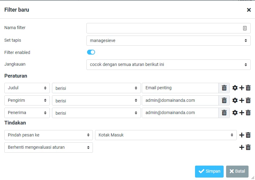 Peraturan: ketentuan yang diberlakukan untuk filter email