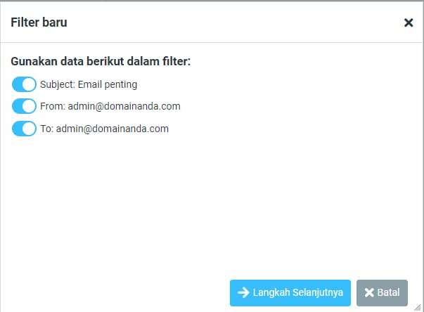 Sesuaikan pengaturan filter email dan klik Langkah Selanjutnya: