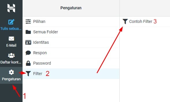 Di menu ini, Anda bisa membuat filter untuk semua situasi yang akan mempermudah proses penyaringan terhadap email yang tidak diinginkan atau diharapkan sehingga mailbox tetap rapi.