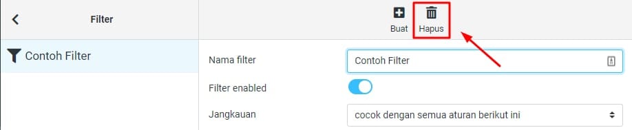 Pada bagian atas halaman, Anda bisa menambahkan atau menghapus filter email: