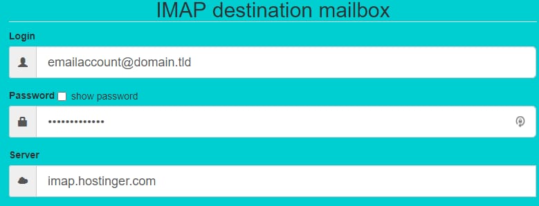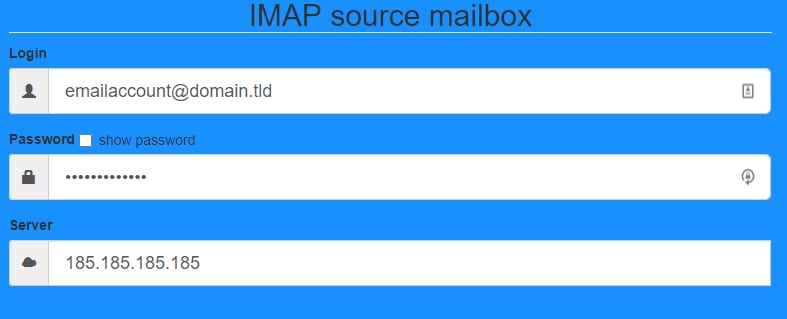 Pada tabel di sebelah kiri, masukkan alamat email, password, dan nama server IMAP email yang akan Anda pindahkan.