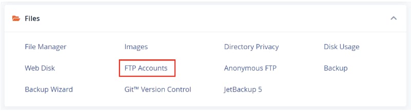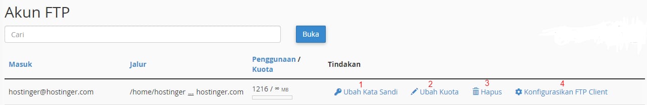 Detail FTP dapat diakses dengan membuka cPanel dan mengklik Akun FTP: