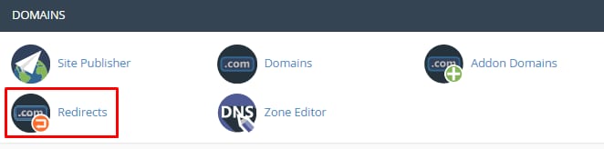 Pengalihan hosting dapat diatur melalui menu Pengalihan (Redirect). Buka cPanel, lalu klik Redirects: