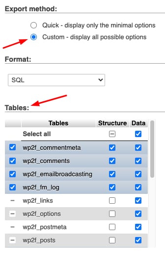 Apabila Anda ingin mengatur persyaratan khusus, ubah format atau ekspor hanya beberapa tabel dari database: