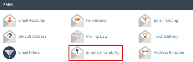 Untuk mengaktifkan DKIM di cPanel, pilih sub-menu Email Deliverability yang ada di menu Email:
