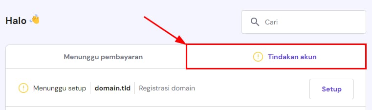 Setelah melakukan pembelian dan pembayaran dinyatakan berhasil dari sisi kami, order Anda siap di-setup. Order ini dapat dicek di Member Area Hostinger.