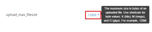 Selanjutnya, klik Options dan scroll sampai menemukan upload_max_filesize, lalu pilih value maksimum yang tersedia untuk paket Anda.