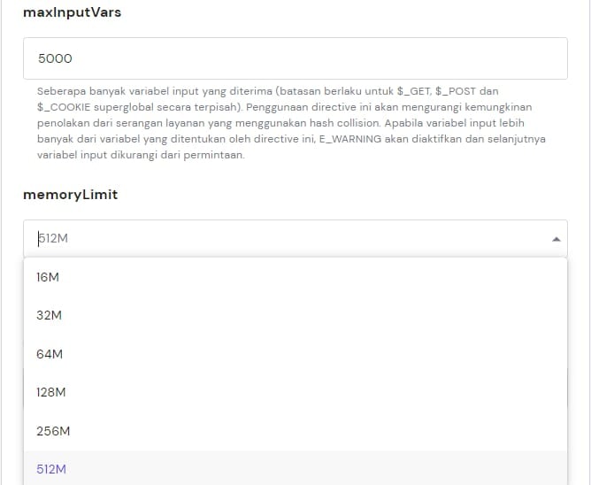 Anda hanya dapat memilih value yang sama atau kurang dari limit resource di paket hosting Anda.
