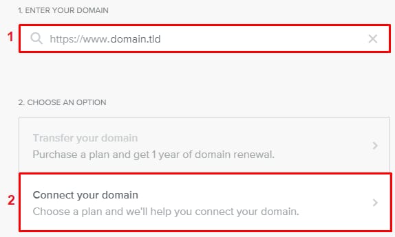 Masukkan nama domain sekali lagi, lalu klik Connect your domain: