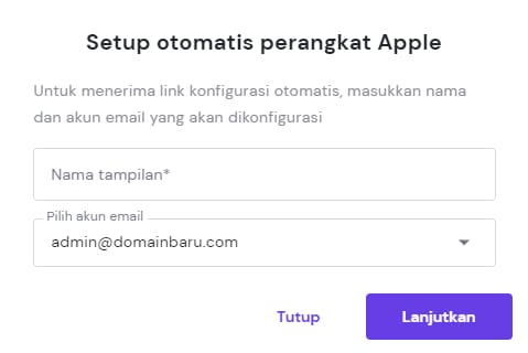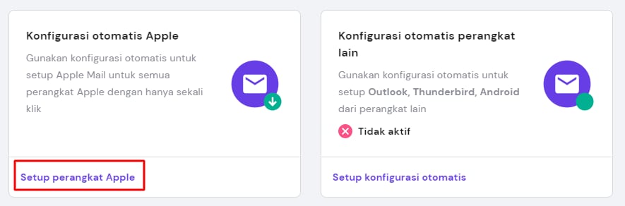 Buka Email → nama domain → Setup Perangkat di browser Safari (profil tidak dapat diunduh jika menggunakan browser lain).