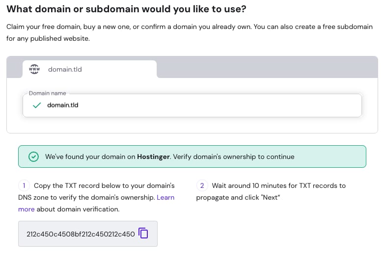 Jika Anda memiliki domain yang terdaftar di satu akun Hostinger dan ingin menghubungkannya ke website yang dihosting di akun yang berbeda, Anda perlu memverifikasi kepemilikan domain dengan menambahkan TXT record ke DNS zone.