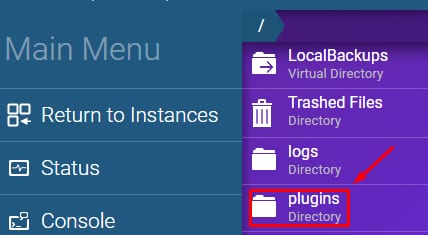 Tunggu hingga proses download selesai, buka kembali menu Instances dan pilih Plugins: