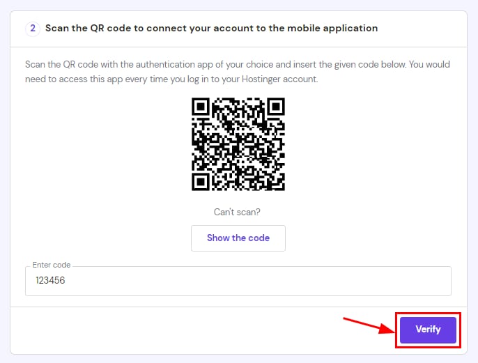 Anda akan menerima kode konfirmasi di email terdaftar Anda. Masukkan dan klik Konfirmasi. Selanjutnya, pindai kode QR dengan aplikasi seluler Anda dan masukkan kode numerik yang akan dihasilkannya: