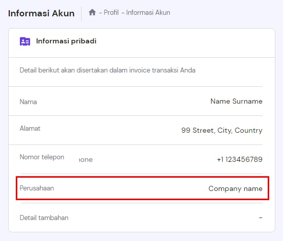 Anda dapat mengupdate kode PPN yang ingin disertakan dalam invoice melalui detail profil di akun Anda.