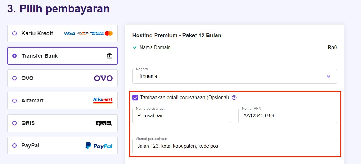 Selanjutnya, centang bagian Tambahkan detail perusahaan dan masukkan informasi tentang perusahaan Anda.