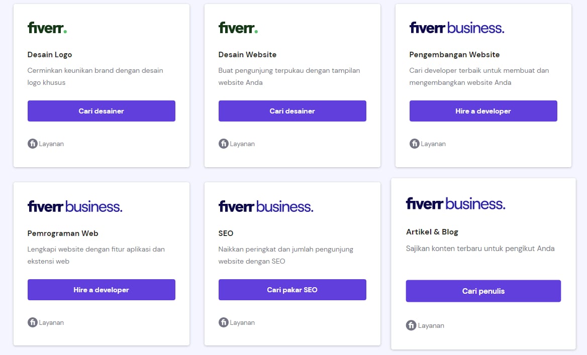 Fiverr adalah platform online untuk penyedia jasa freelance dari seluruh dunia. Di Fiverr, Anda bisa menemukan freelancer yang menawarkan jasa desain WordPress, desain logo, programming, bahkan pengisi suara.