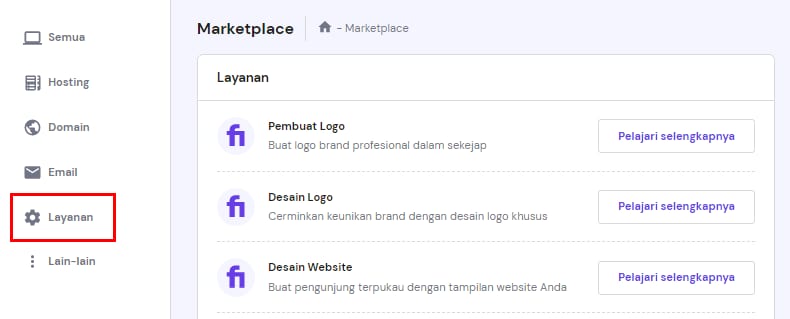 Di bilah sisi kiri, klik Layanan untuk menemukan daftar lengkap opsi: