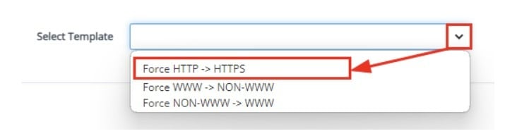 Klik dropdown list dan pilih Force HTTP → HTTPS:
