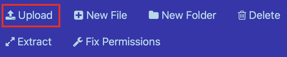 Saat membuka direktori tujuan yang diinginkan, klik Upload di kanan atas jendela File Manager: