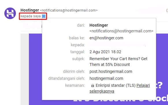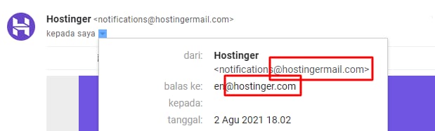 Jika email dikirim dari salah satu domain di atas, maka email dikirim dari Hostinger.