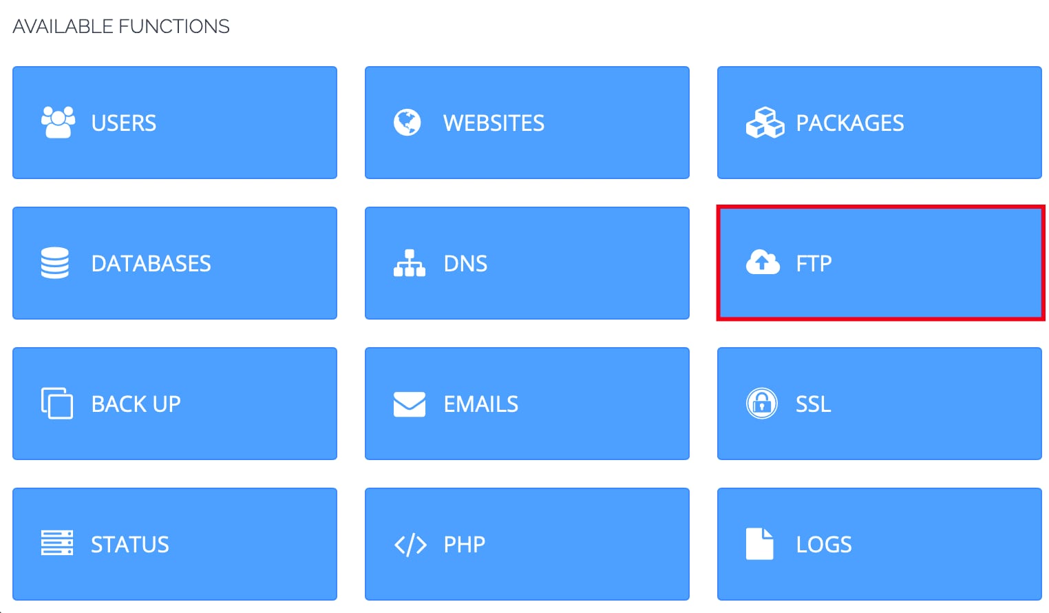 Di Available functions, klik FTP: