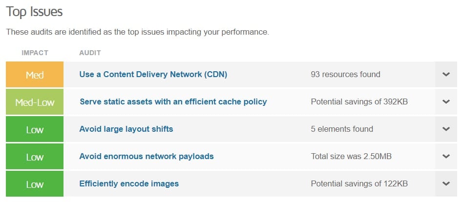 Kendala yang diberi label High atau Medium memiliki efek yang besar dalam performa kinerja situs Anda. Oleh karena itu, ingatlah untuk selalu menangani kendala yang diberi label High dan Medium terlebih dahulu.
