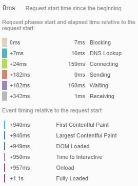 Data ini sangat berguna bagi developer karena data menunjukkan perilaku situs saat dimuat. Setiap elemen situs ditunjukkan dalam grafik utama, dengan waktu yang dibutuhkan untuk proses loading: