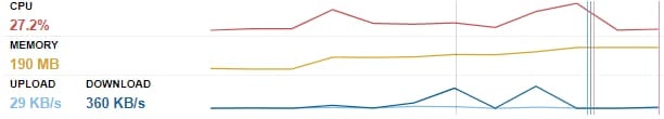 Selain itu, Anda juga dapat melihat data tentang CPU, penggunaan memori, dan kecepatan upload dan download: