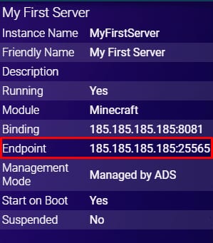 Setelah download selesai, klik kembali tombol Start. Server akan dimuat ulang, dan Anda dapat mengakses server dengan informasi Endpoint: