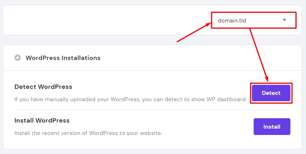 Selanjutnya, pilih domain atau subdomain dari daftar drop-down dan klik Detect: