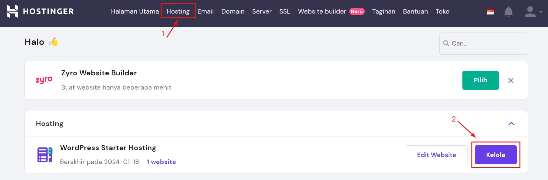 Buka Public key (biasanya id_rsa.pub) dengan editor teks apa pun dan salin semua konten di dalamnya. Kemudian buka Hosting → Kelola: