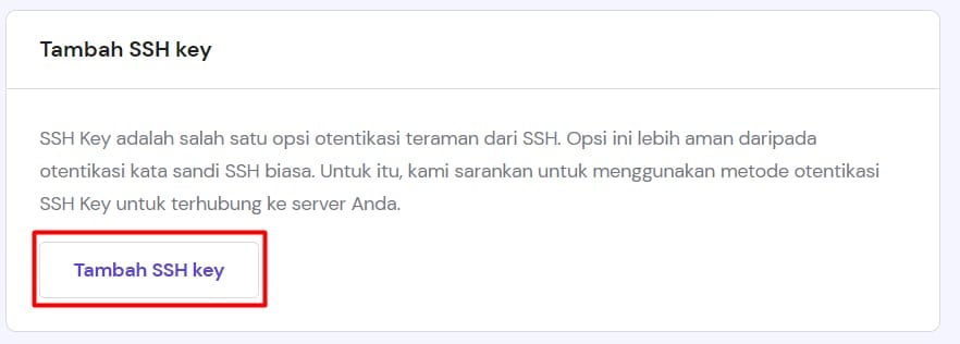 Langkah 2 – Tambahkan SSH keys ke hPanel