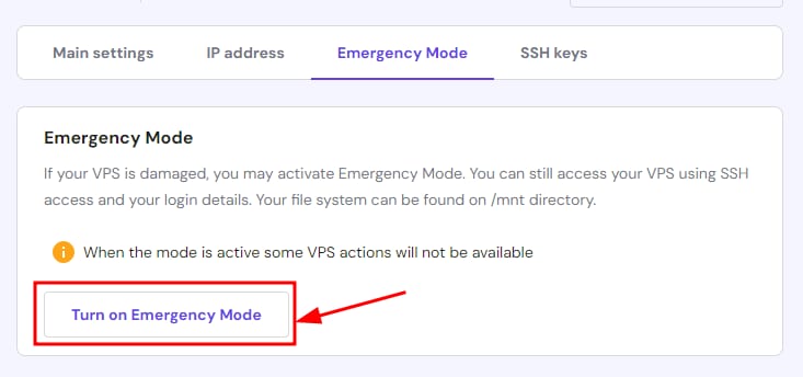 Mode darurat atau emergency mode VPS adalah opsi terakhir untuk memulihkan data yang corrupt atau rusak di VPS. Terkadang, malware atau penghapusan file sistem secara tidak sengaja dapat membuat VPS tidak dapat digunakan. Jika Anda tidak dapat memulihkan data backup, kami sarankan Anda mengaktifkan mode darurat.