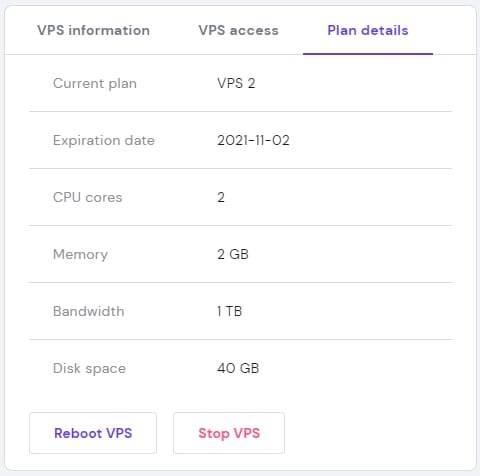 Anda juga dapat memulai ulang atau menghentikan VPS Anda sepenuhnya dengan beberapa klik!