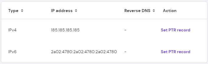 Di sini Anda dapat mengonfigurasi Catatan PTR untuk alamat IPv4 atau IPv6 Anda: