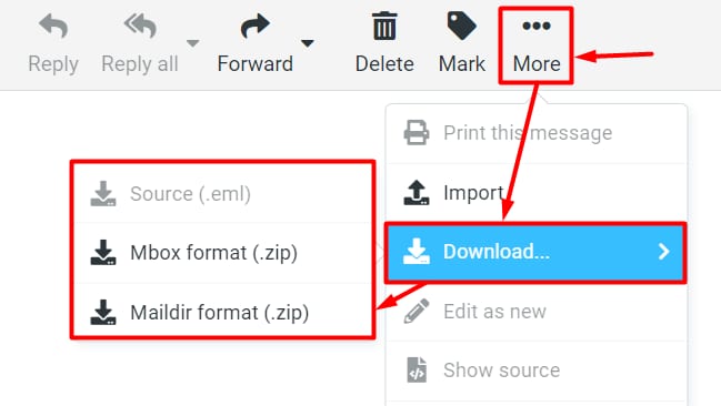 Anda bisa mengekspor email ke format EML, MIME, atau Mbox dengan Webmail.