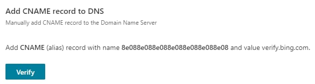 Apabila DNS Checker menampilkan tanda centang hijau, kembali ke Bing Search Console dan klik Verify. Anda seharusnya melihat tampilan ini:
