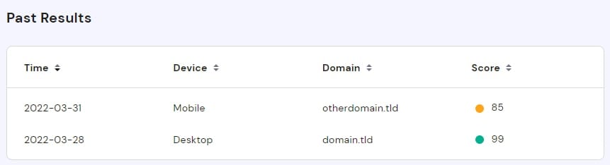 Menampilkan riwayat penggunaan tool PageSpeed sebelumnya: