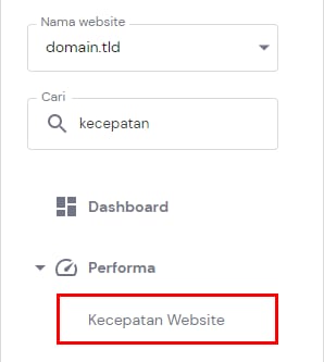 Anda dapat menemukan tool ini melalui Website → Kelola, lalu cari Kecepatan Website di sidebar sebelah kiri: