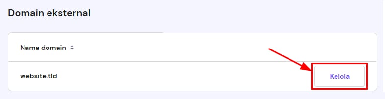 Buka bagian Domain di bilah atas hPanel dan gulir ke bawah ke daftar Domain eksternal. Selanjutnya, klik Kelola di sebelah domain: